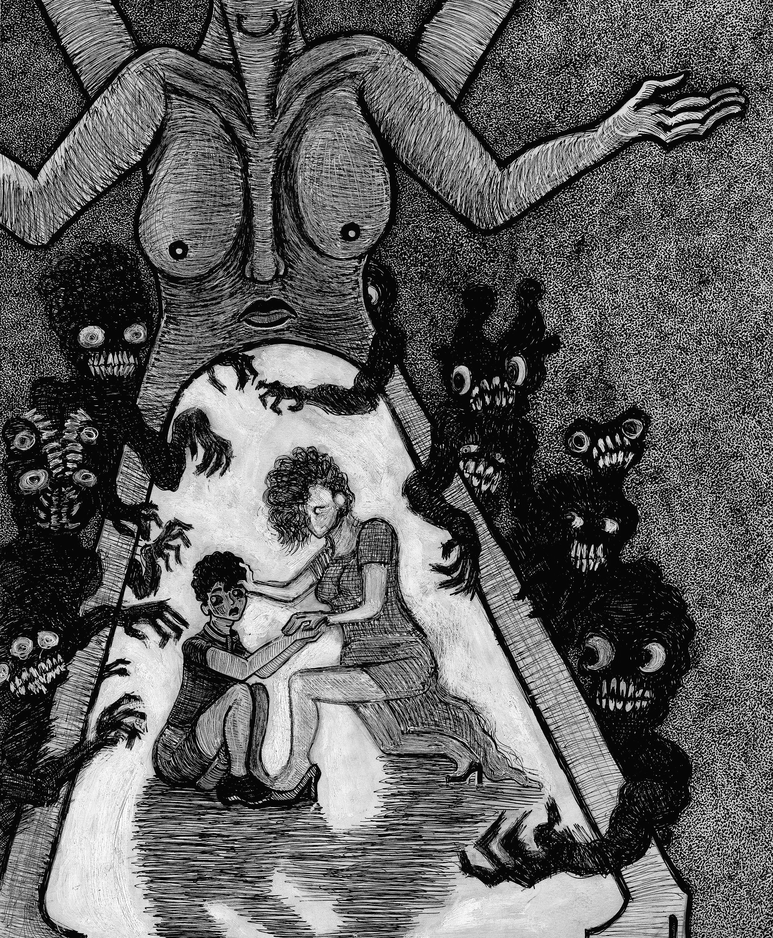 Becoming my Own Mother, Ink on Bristol, 14 x 17”