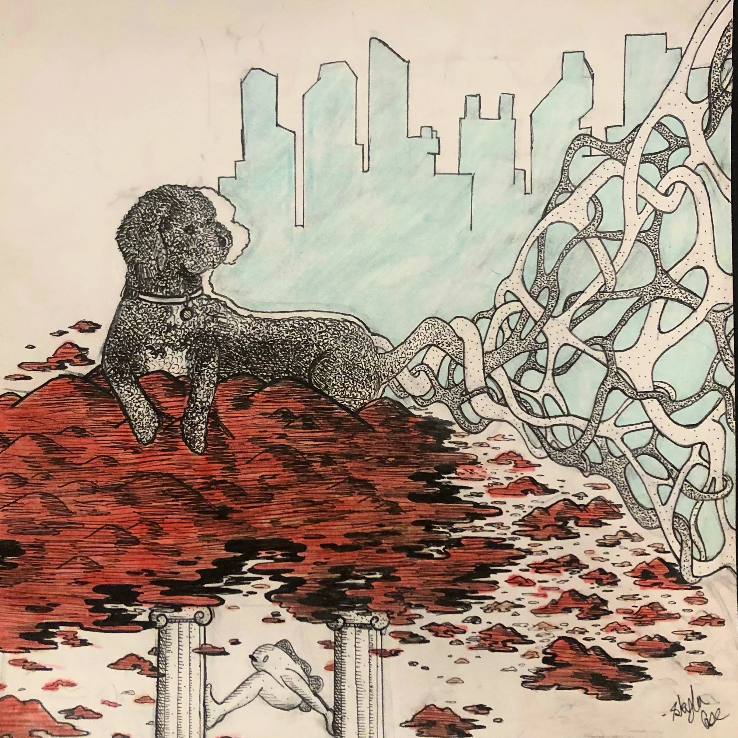 Buddy the Dog, Ink and Copics on Bristol, 10 x 10”